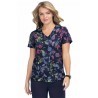 Top estampado elástico Koi Basics Leslie para mujer con dos bolsillos.