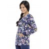 Una chamarra de calentamiento con estampado de botones a presión en la parte delantera de ajuste clásico moderno presenta un cuello redondo, un canesú en la parte posterior y puños de punto acanalado. También se presentan dos bolsillos de parche con trabillas para instrumentos sobre el bolsillo derecho.